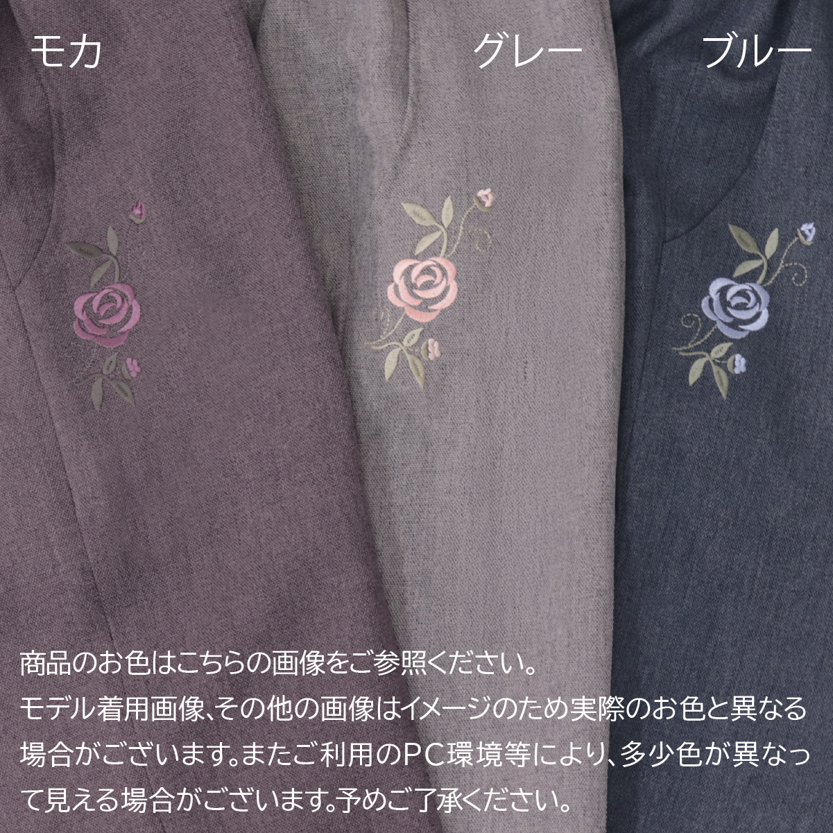 | グレー | コン | モカ | ブルー | |